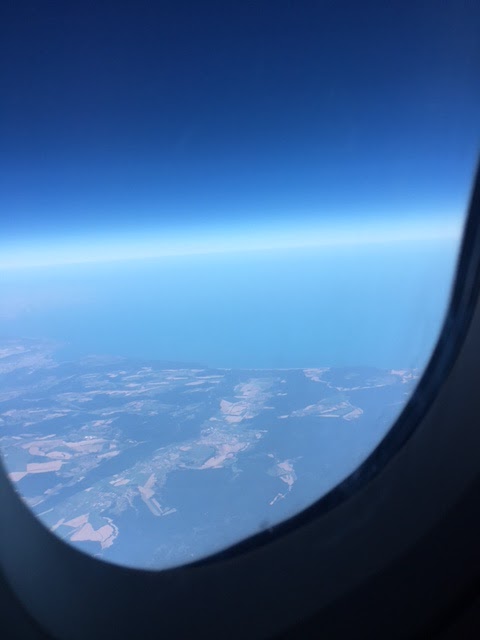 Our first glimpse of the Black Sea, with Bulgaria in the foreground, and coming up on Turkey below, with the Bosphorus Strait in the middle if you look Really Carefully.