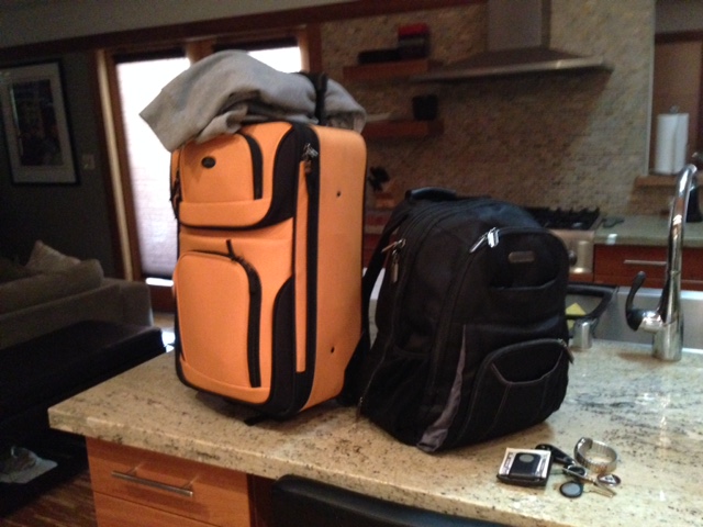 That’s a standard carry-on sized roller bag – maybe even on the small side – and the laptop bag I purchased for last year’s trip and use everyday for work. Here’s what’s in them: