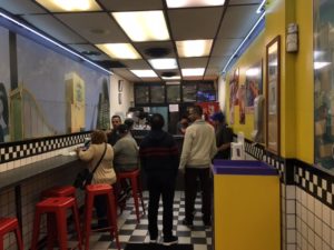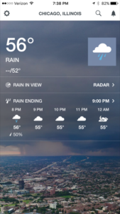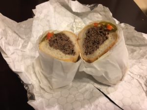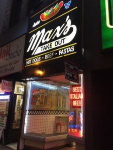 It was raining when we got here and most of the evening. Dan was looking for restaurants and couldn’t decide where to go. I reminded him when we were in Philadelphia we went on a sandwich search – 3 different places now as I recall – and Chicago is supposed to be big on “Chicago style” hot dogs and pizza. Why not?